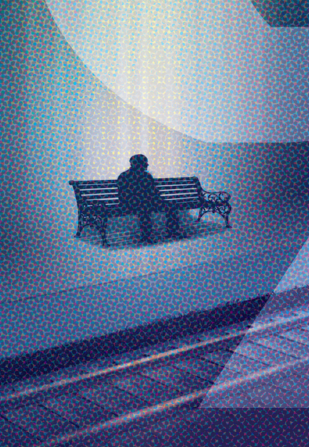The guy on the bench wasn't planned — he emerged from my own reaction to my own work. That's kinda wild, I guess.